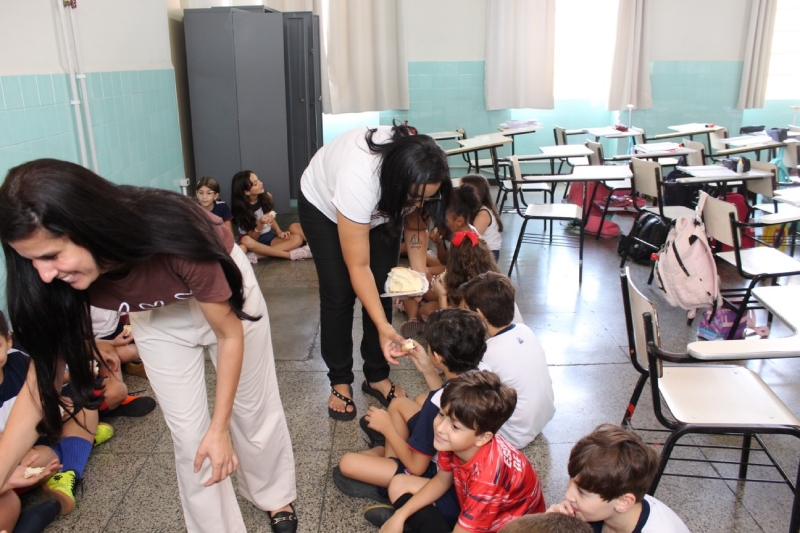 Alunos dos períodos da manhã e da tarde participaram de acolhidas especiais de Páscoa, marcadas por momentos simbólicos de partilha do pão e do suco, relembrando o gesto de Jesus como sinal de união, serviço e solidariedade.