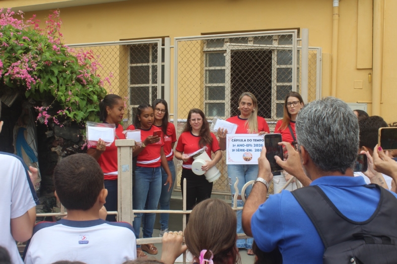 Dando continuidade à programação, diversas atividades aconteceram simultaneamente, proporcionando integração e participação de todos. Os alunos do 2º ano do Ensino Médio organizaram uma exposição de peças históricas da ENSA, resgatando memórias importantes da instituição. Já os alunos do 5º ano participaram de um momento simbólico ao enterrar uma cápsula do tempo com fotos, cartas e mensagens, que será aberta daqui a sete anos, quando estiverem no 3º ano do Ensino Médio.