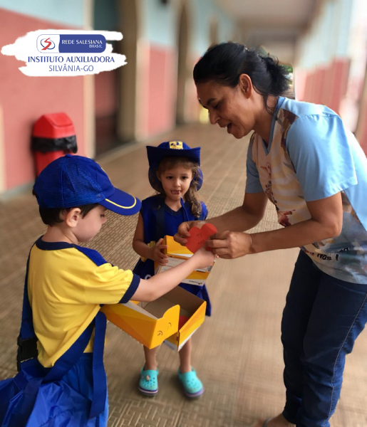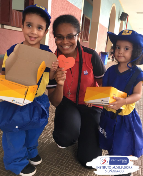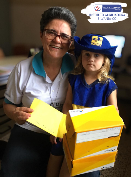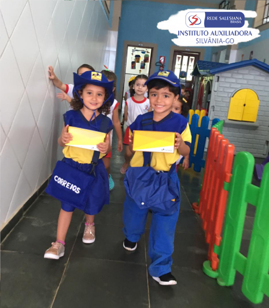 A Educação Infantil l ( 3anos), seguindo mais um giro, CORREIO AMIGO, as crianças se fantasiaram do carteiro JOSEPH ROULIM amigo de VAN GOGH e distribuíram encantamento e amor através de cartinhas feitas por eles.