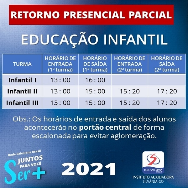 Contamos com sua pontualidade aos horários para que a logística das medidas protetivas de biossegurança da escola funcione bem.