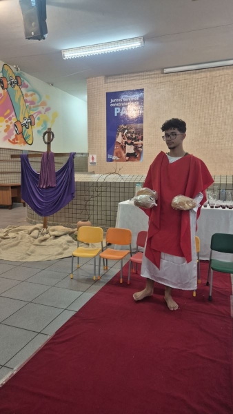 Os alunos do Ensino Fundamental II e do Ensino Médio também participaram da preparação para a Semana Santa por meio de podcasts e momentos de reflexão sobre o caminho de Jesus até a cruz. A iniciativa favoreceu uma vivência mais consciente desse período, conectando fé, valores e realidade cotidiana dos jovens.