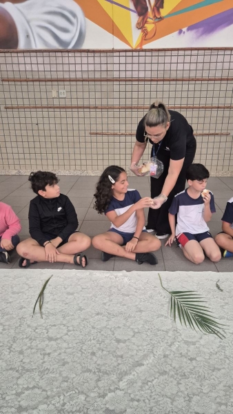 Durante esses momentos, a música “A Semana Santa Começou” acompanhou as atividades com as turmas menores, contribuindo para o clima de acolhida e espiritualidade vivenciado pelos estudantes.