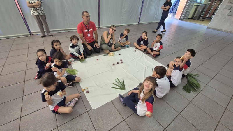 Na terça-feira (31), foi a vez dos estudantes do Ensino Fundamental I aprofundarem a reflexão. Pela manhã, as turmas dos 2º e 3º anos participaram do encontro, que teve continuidade ao longo do período. À tarde, as vivências envolveram os alunos dos 1º, 2º, 3º, 4º e 5º anos, reunidos na área coberta da escola.