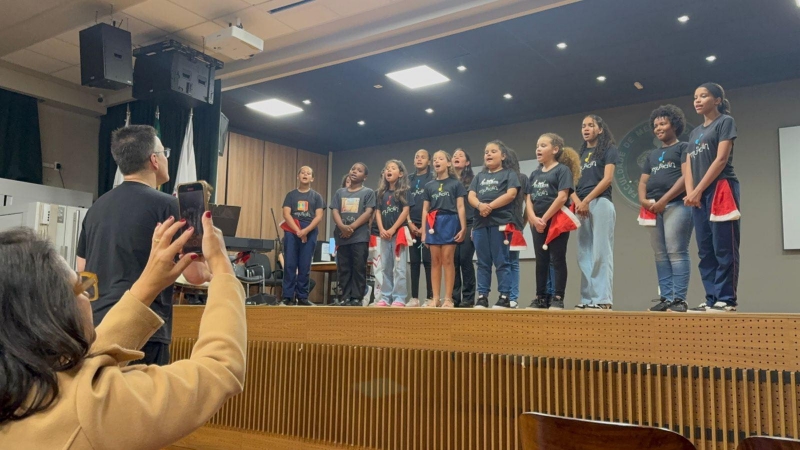Ontem, estivemos presentes apresentando o nosso Canto Coral Musidim Alegro, que abriu o evento como forma de agradecer à Faculdade, às professoras sempre maravilhosas e aos acadêmicos - nossos “tios do coração”. É um verdadeiro presente ter esse projeto conosco!
