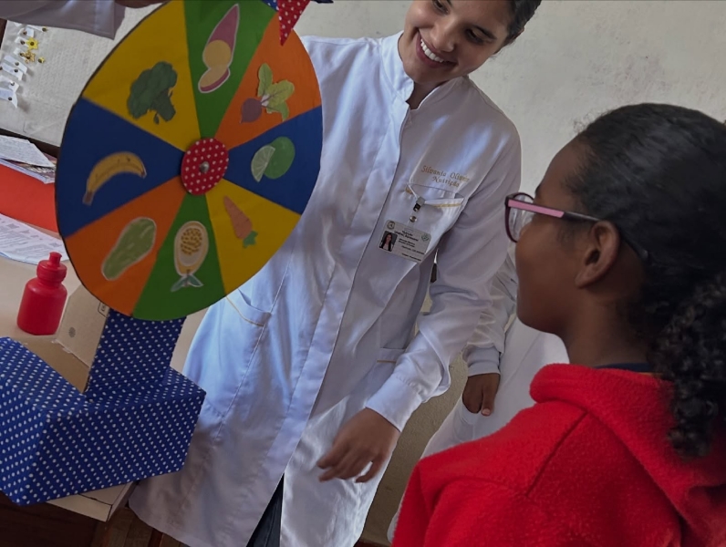 Dia 27 de novembro - Nutrição - Quando a faculdade entra em cena, até o bingo vira saudável! Foi uma tarde de diversão, alegria, aprendizados e muitas descobertas sobre como cuidar bem da nossa saúde - tudo com aquele toque especial de quem ama o que faz. Saboreamos laranjas deliciosas e refrescantes, porque cuidar do corpo também é viver momentos simples e cheios de sabor.