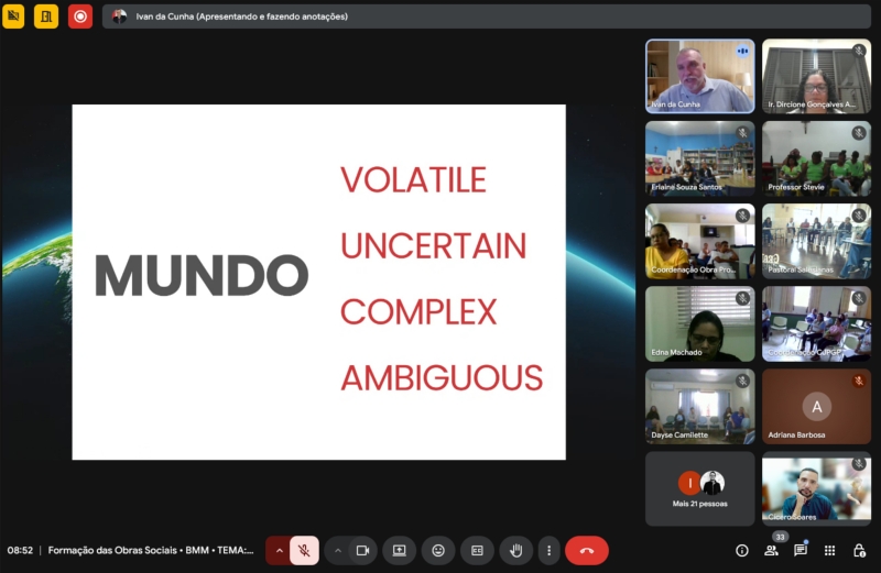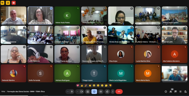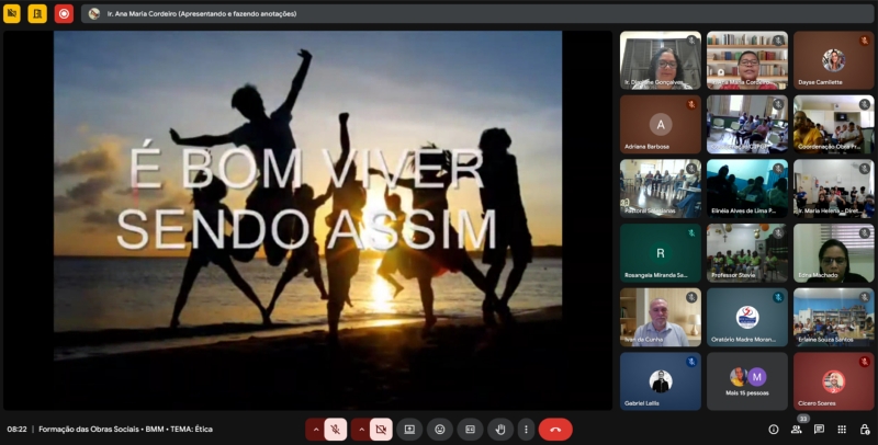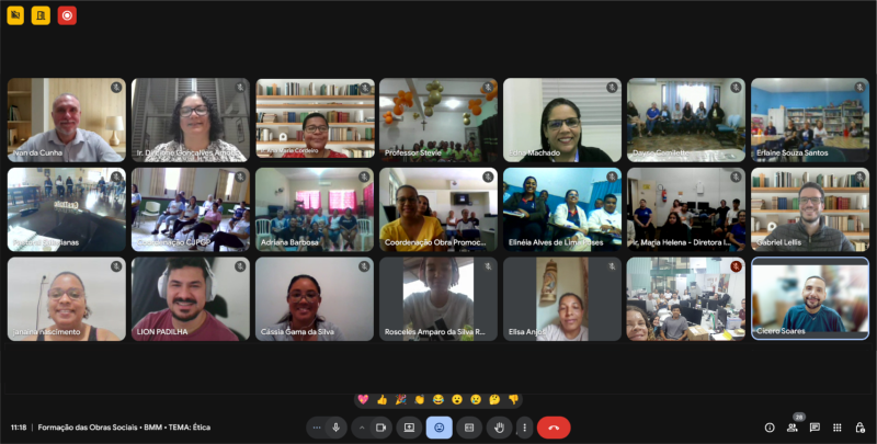 No dia 31 de outubro, a Coordenação de Ação Social da Inspetoria Madre Mazzarello-BMM promoveu uma formação on-line com as Equipes das Obras Sociais, refletindo sobre o tema “Ética: instrumento de crescimento e transformação pessoal e social”, conduzida por Ivan da Cunha. Participaram do encontro 14 Obras Sociais, totalizando 127 integrantes das equipes, que se reuniram em um ambiente de aprendizado, troca e espiritualidade salesiana.