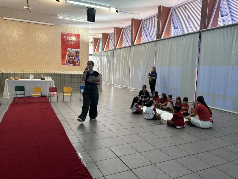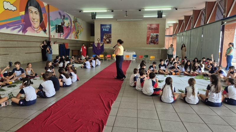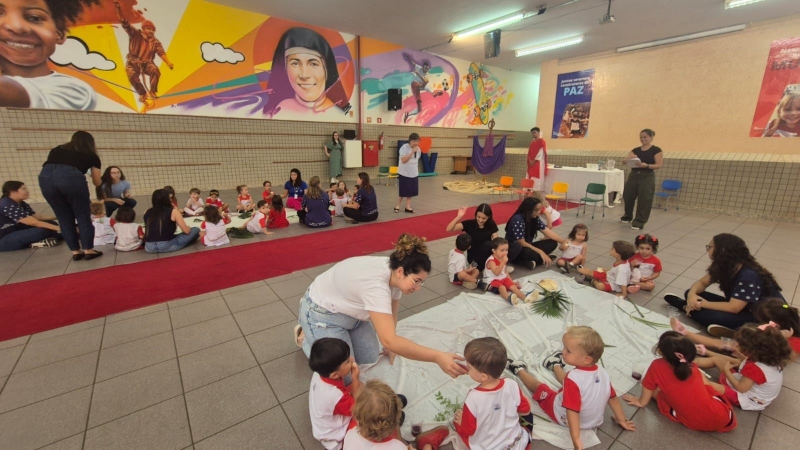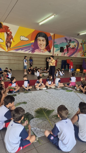 Na terça-feira (31), foi a vez dos estudantes do Ensino Fundamental I aprofundarem a reflexão. Pela manhã, as turmas dos 2º e 3º anos participaram do encontro, que teve continuidade ao longo do período. À tarde, as vivências envolveram os alunos dos 1º, 2º, 3º, 4º e 5º anos, reunidos na área coberta da escola.