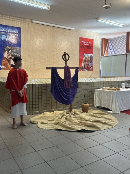 Os alunos do Ensino Fundamental II e do Ensino Médio também participaram da preparação para a Semana Santa por meio de podcasts e momentos de reflexão sobre o caminho de Jesus até a cruz. A iniciativa favoreceu uma vivência mais consciente desse período, conectando fé, valores e realidade cotidiana dos jovens.