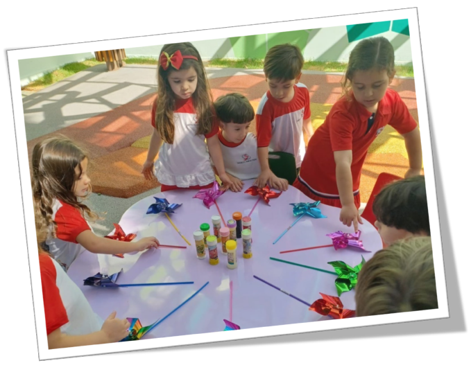- Equipe qualificada e acolhedora, formada por coordenadora, orientadora educacional, professoras e monitoras, que acompanham integralmente as crianças em suas trajetórias de aprendizagem e desenvolvimento.