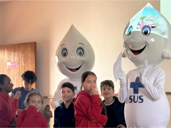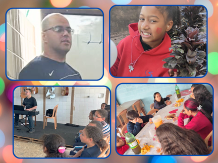 Momento de ensino com as crianças da Turma da Alegria - Cuidando da Natureza - Dia de canto coral com o Musidim Alegro - Café com Aroma Salesianas.