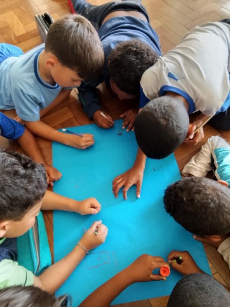 E no dia 29 de agosto, na oficina Enter@ção na era digital os educandos abordaram o tema “Autoconhecimento”, pois conhecer a si mesmo é fundamental em qualquer idade, mas se torna ainda mais crucial para crianças e adolescentes em um mundo dominado por telas. A jornada do autoconhecimento os ajuda a entender suas emoções, talentos e o que os torna únicos, permitindo que construam uma identidade forte e autêntica, independente das personas ou interações digitais. Ao se perguntarem “*Quem sou eu fora das telas?*”, eles são incentivados a explorar o mundo real, cultivar hobbies, fortalecer amizades e descobrir o prazer de estar presente, equilibrando a vida online com a offline. Assim, o autoconhecimento se torna uma bússola que os guia para uma vida mais equilibrada e saudável, onde sua identidade real brilha mais do que qualquer filtro ou post nas redes sociais.