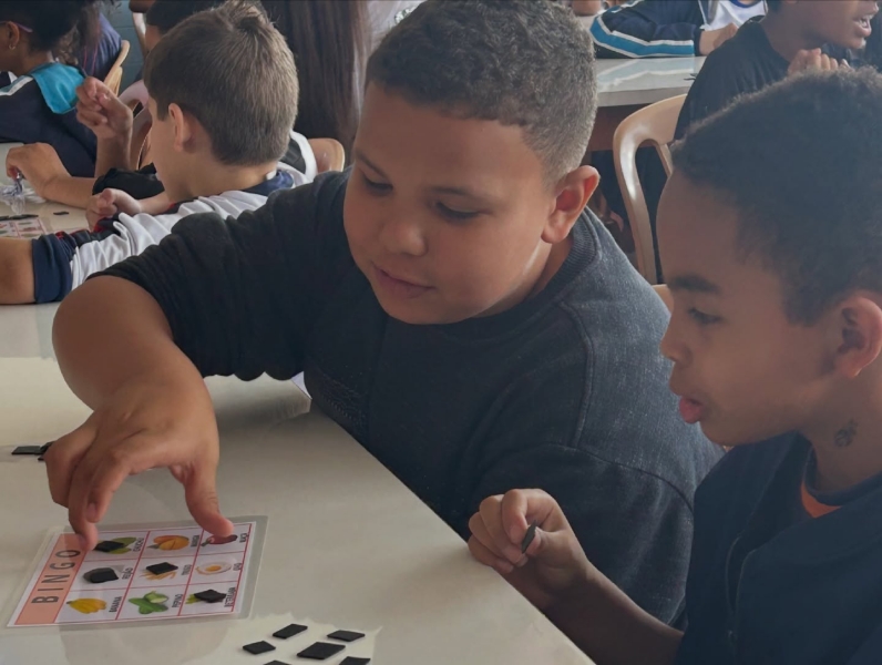 Dia 27 de novembro - Nutrição - Quando a faculdade entra em cena, até o bingo vira saudável! Foi uma tarde de diversão, alegria, aprendizados e muitas descobertas sobre como cuidar bem da nossa saúde - tudo com aquele toque especial de quem ama o que faz. Saboreamos laranjas deliciosas e refrescantes, porque cuidar do corpo também é viver momentos simples e cheios de sabor.